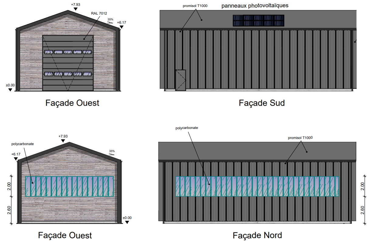 Le projet a pour objet la construction d’un hangar « espaces verts » comprenant une remise pour les véhicules, des bureaux, des vestiaires, des sanitaires et un auvent.