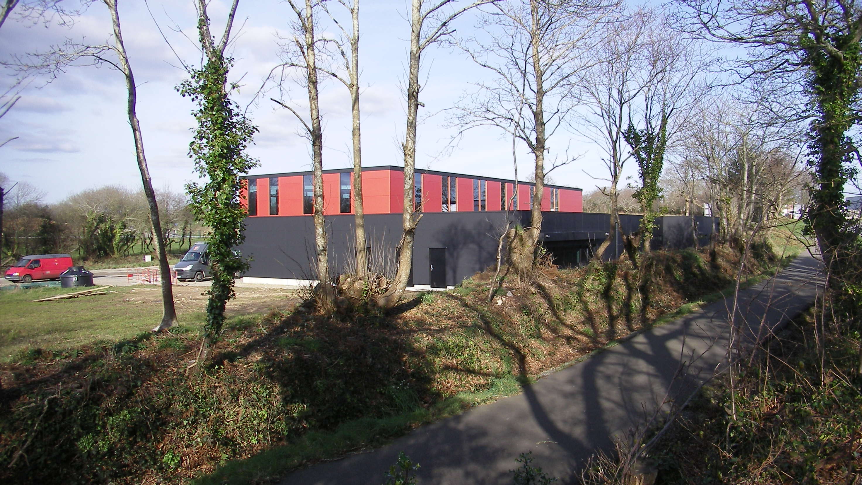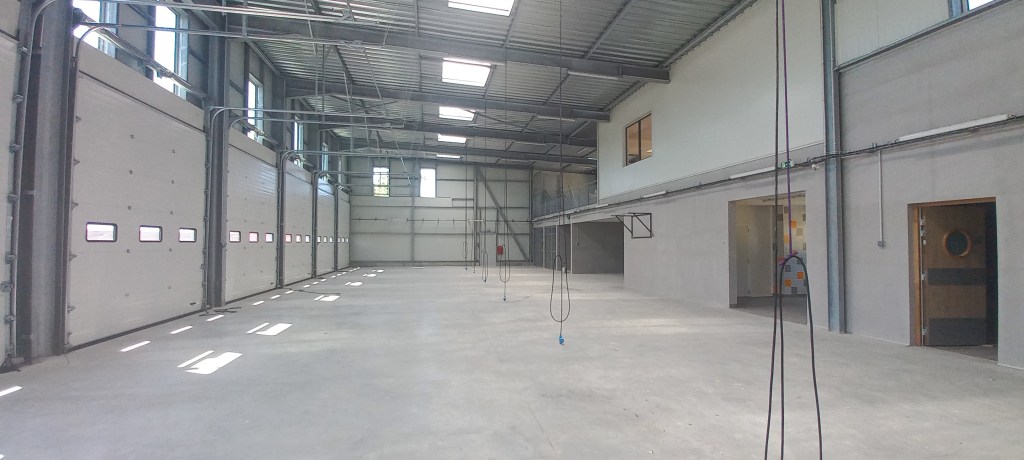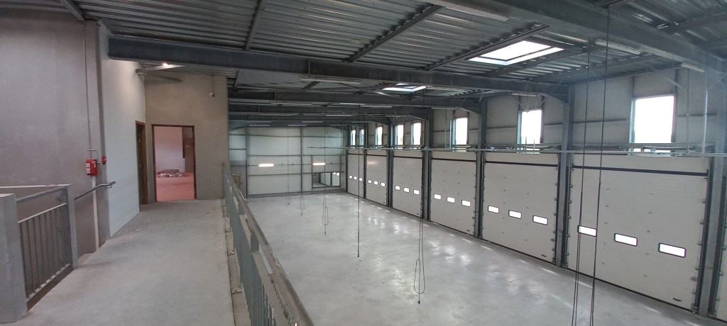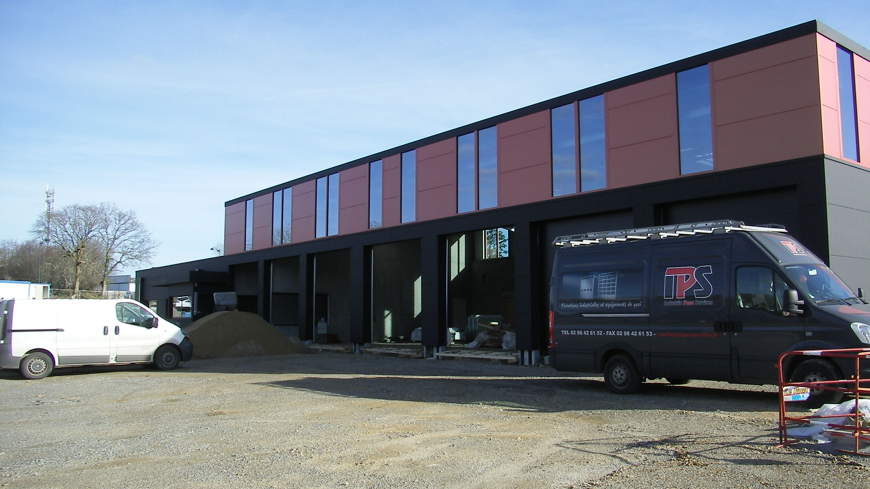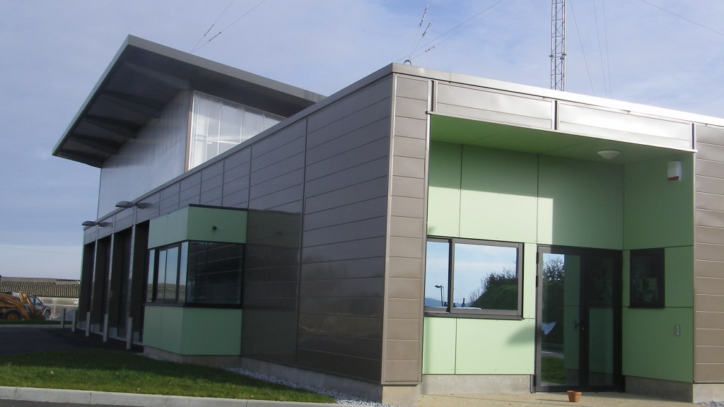 Le bâtiment comprend deux volumes, un volume « haut » abritant les remises, les locaux techniques opérationnels ainsi qu’une mezzanine combiné au volume « bas » regroupant les bureaux,