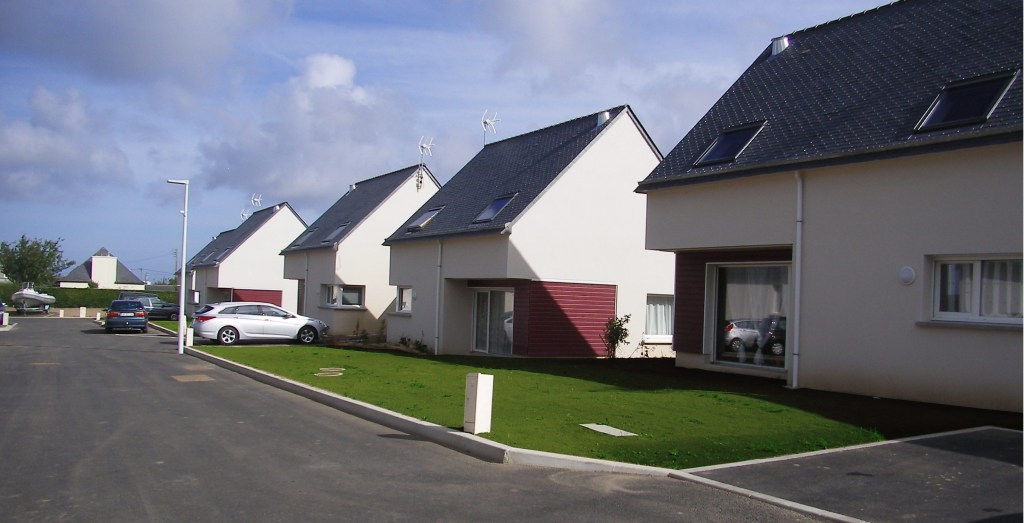 Le volume bas est réalisé en maçonnerie, il est recouvert d’un enduit taloché blanc cassé et d’un enduit gris sur une partie des façades Est et Sud.