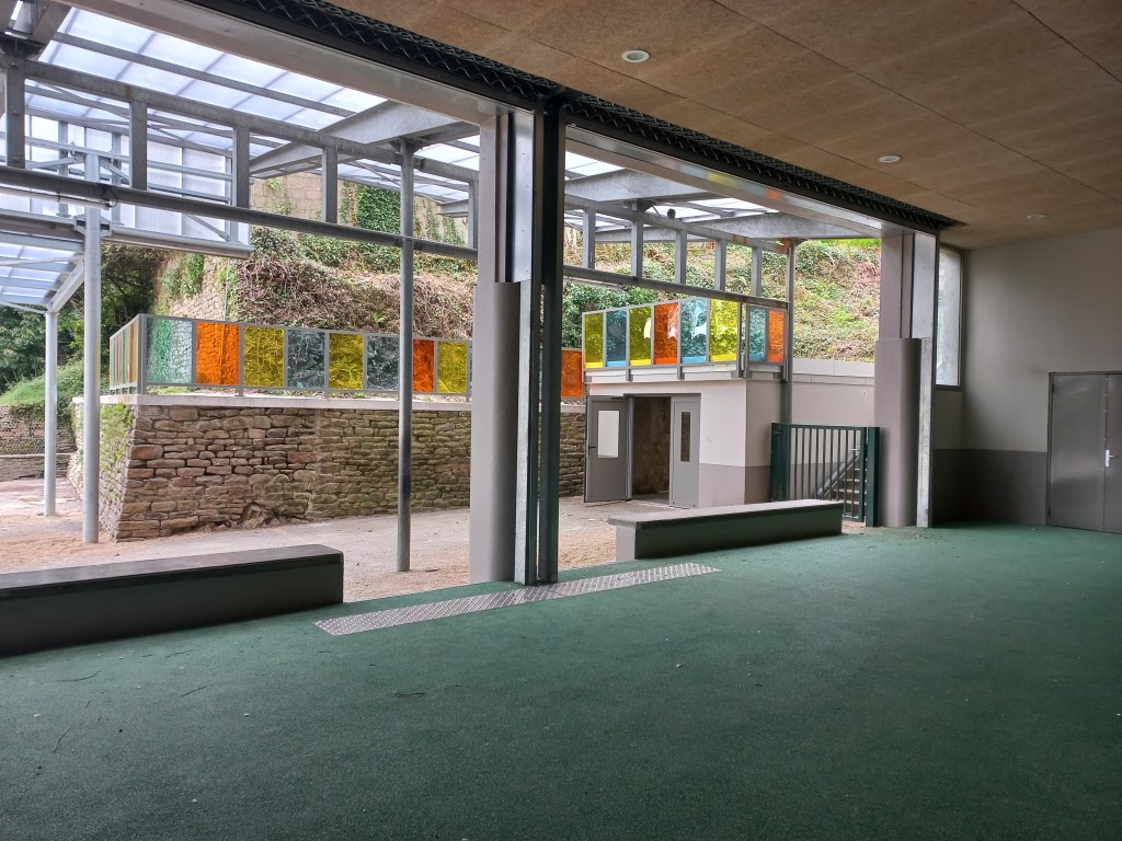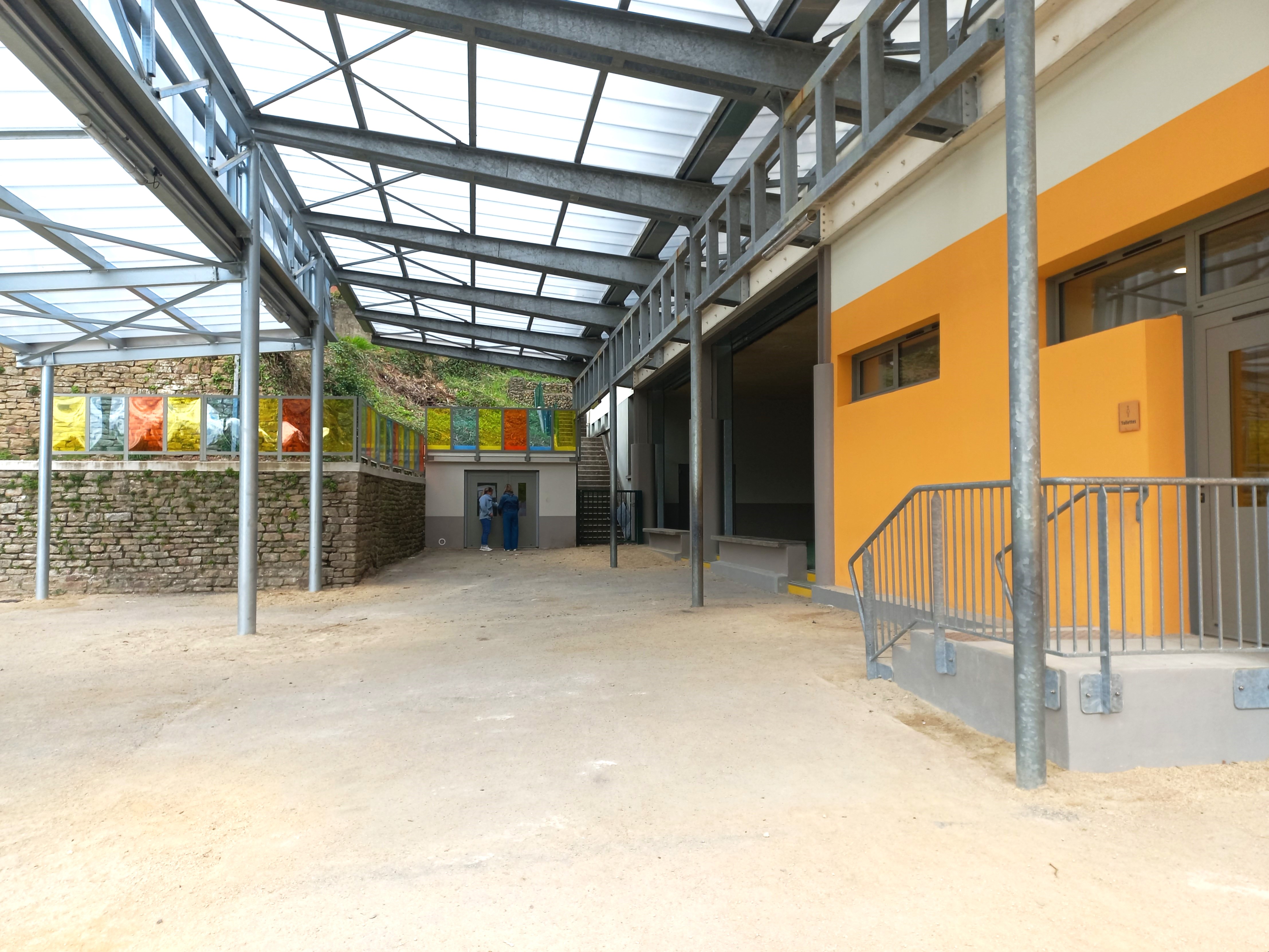 – la création d’une extension du auvent abritant une partie de la cour pour regagner la surface perdue avec l’extension des sanitaire et des rangements