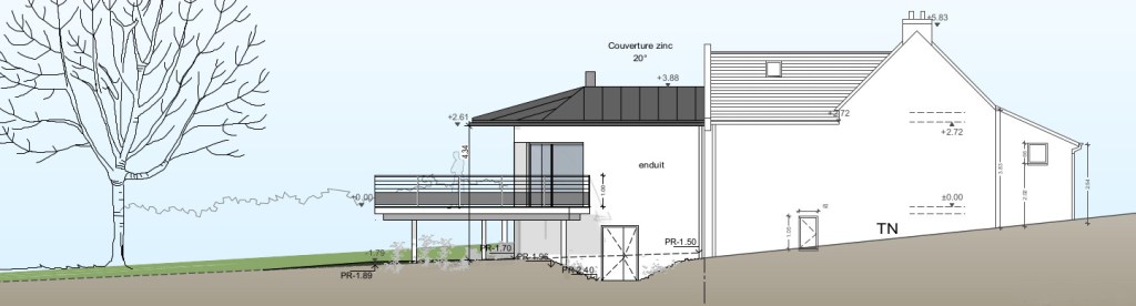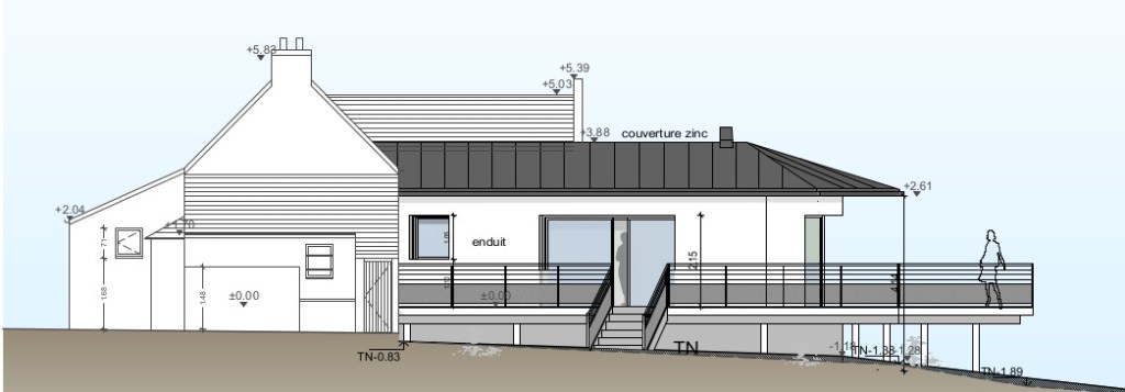 Les espaces existants étant réduits, manquant de luminosité il était essentiel dans le projet de trouver des astuces pour agrandir les espaces sans pour autant pousser les murs, la maison se situant dans un secteur protégé.