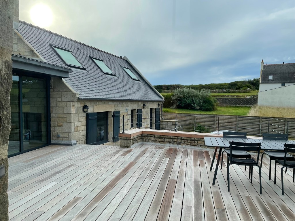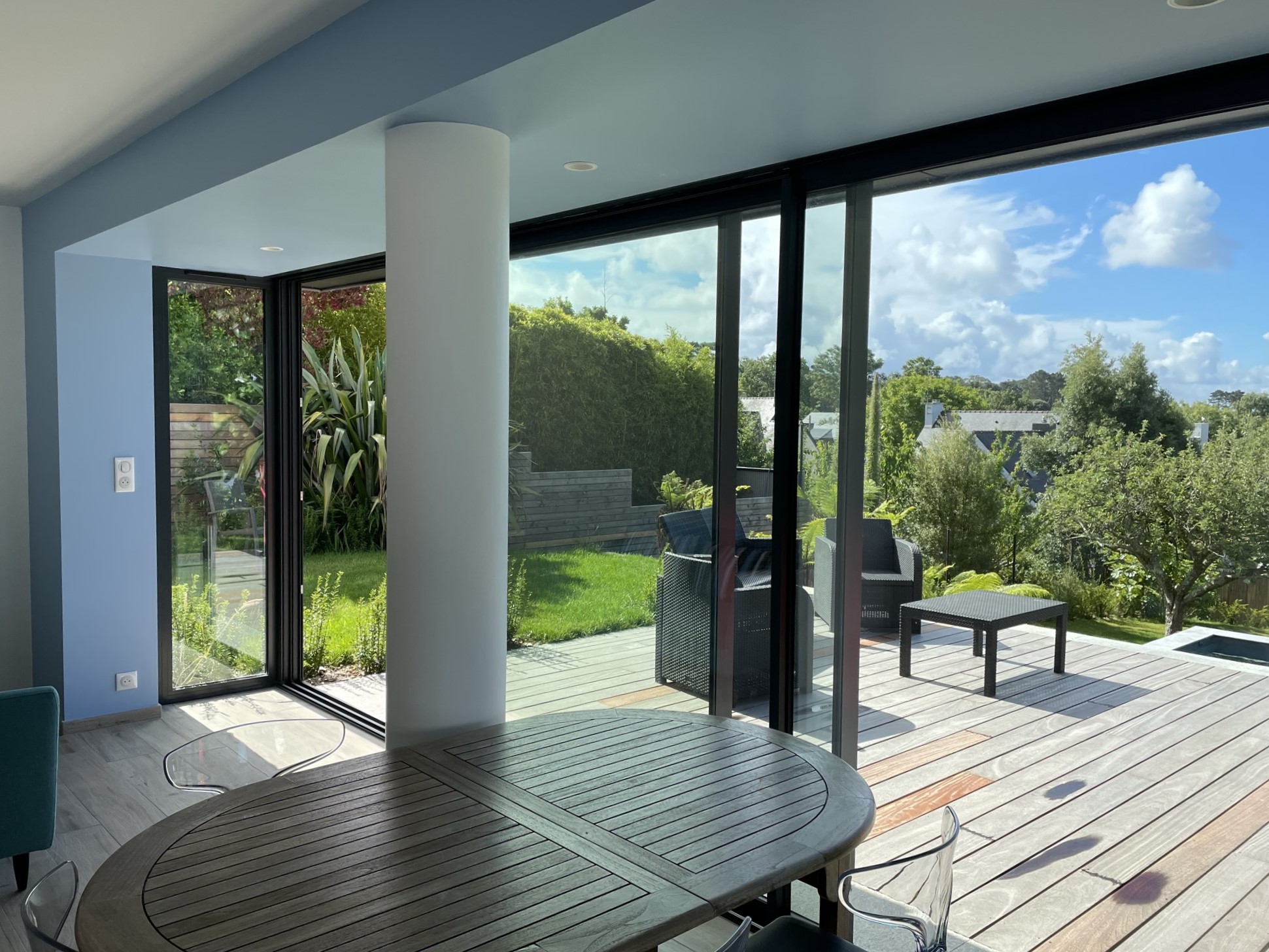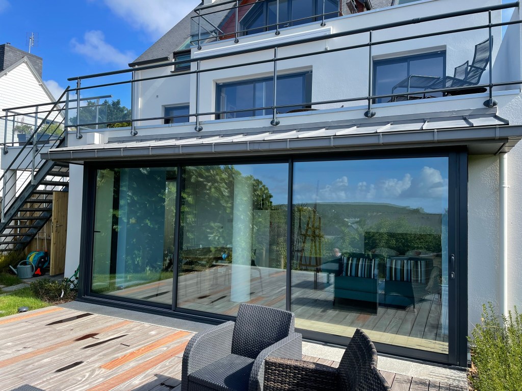 On ouvre également un mur entier sur la véranda (elle-même restructurée) afin de bénéficier d’un grand espace de séjour avec la vue sur mer qui n’était pas mise en valeur dans l’existant.