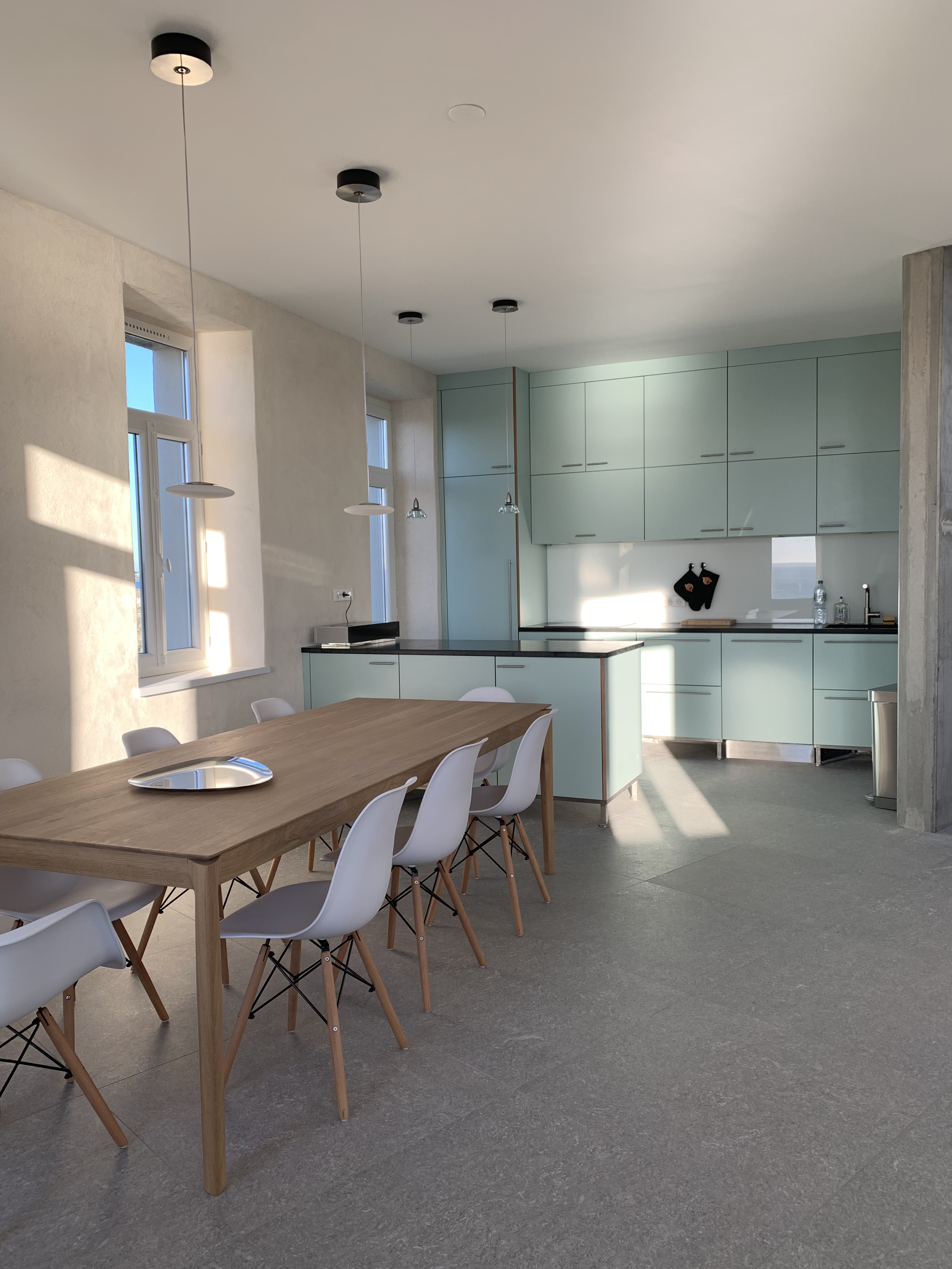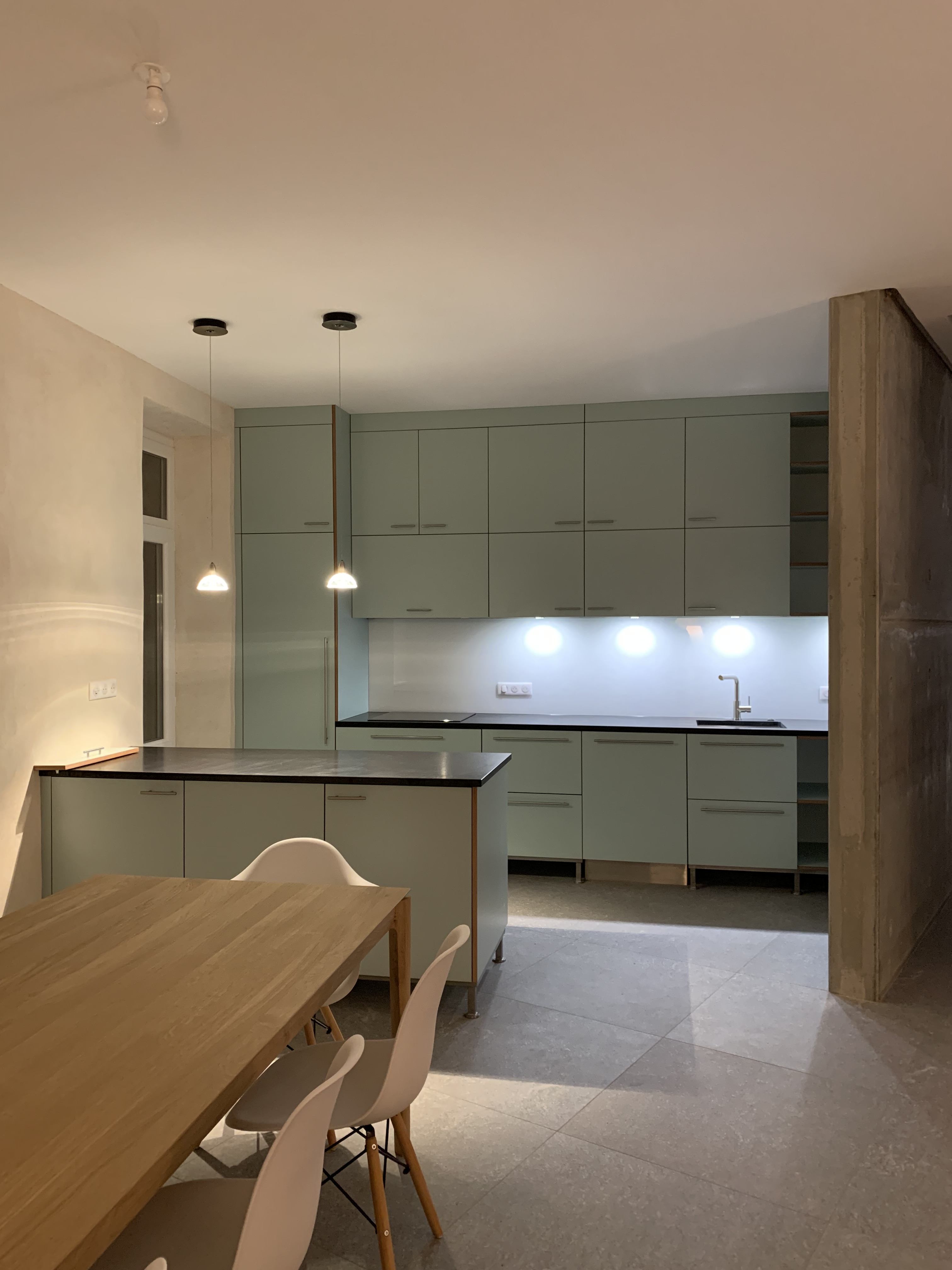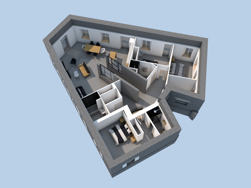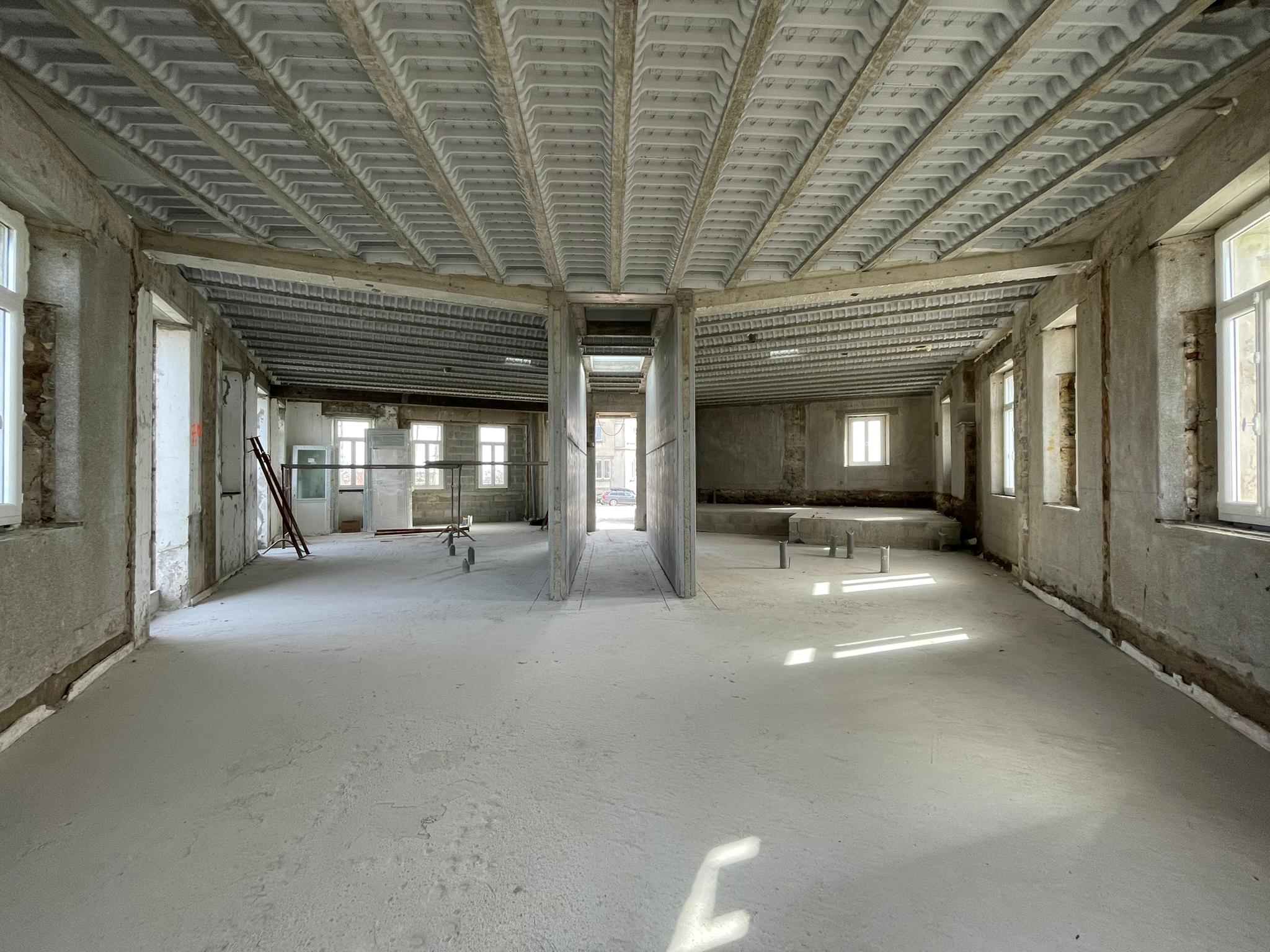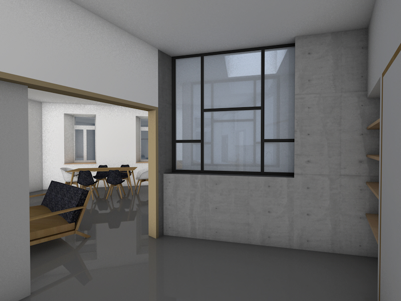 Il y avait plusieurs mezzanine existantes, celles-ci ont été démolies afin de faire bénéficier aux espaces du rez-de-chaussée des hauteurs sous plafond plus importantes avec de l’éclairage zénithal à l’aide de velux.